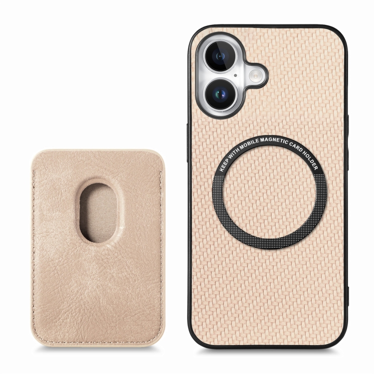 Funda para teléfono iPhone 16 Plus Cuero Fibra de Carbono con Tarjetero y Magsafe (Caqui)