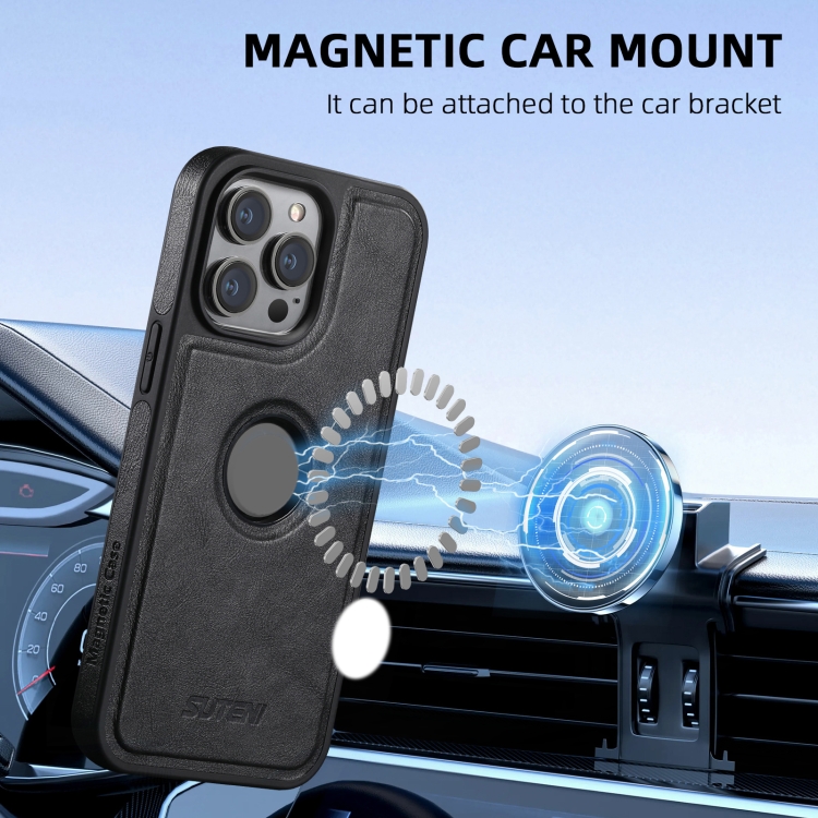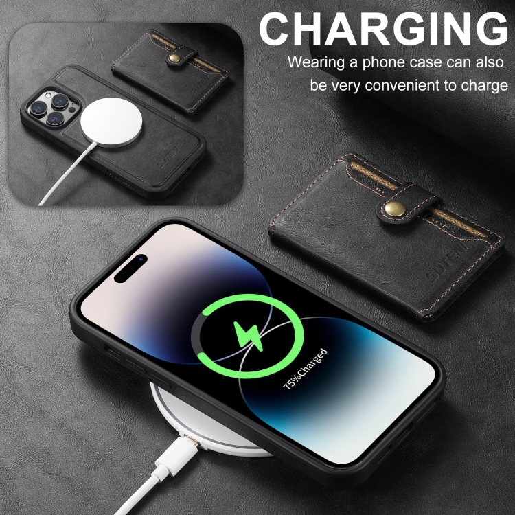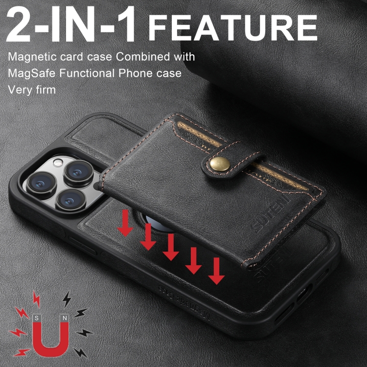 Funda para Teléfono Suteni M1 Oil Wax con Tarjetero Horizontal Desmontable Magsafe para iPhone 16 Plus (Negra)