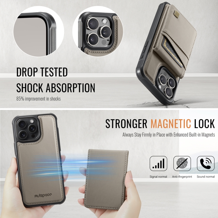 Funda para teléfono Autspace A12 con tarjetero magnético Rfid Magsafe para iPhone 14 Pro Max (Caqui)