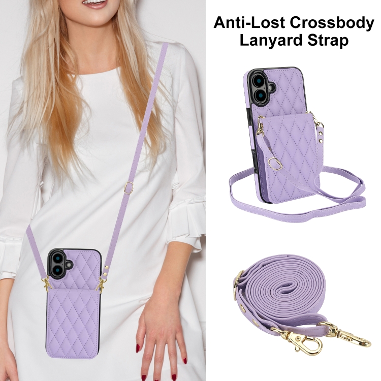 Funda para Teléfono Ym015 con Tarjetero Rfid y Bandolera para iPhone 16 Plus (Morado Claro)