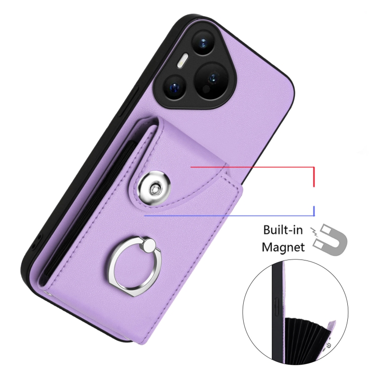 Funda para Teléfono Huawei Pura 70 con Tarjetero, Anilla y Cordón Largo (Morado)