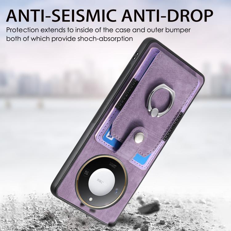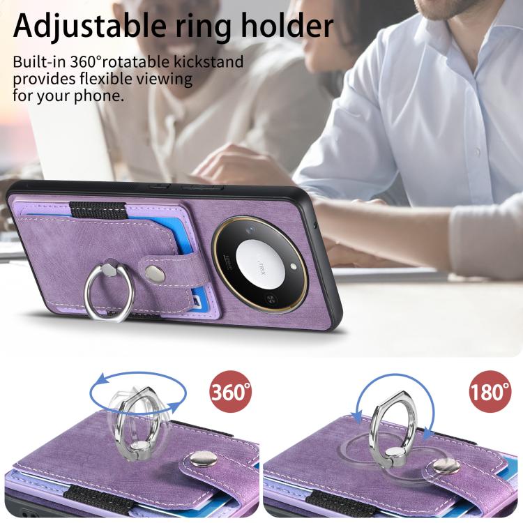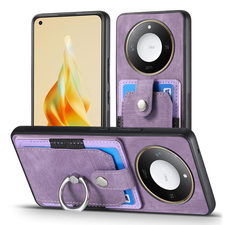 Funda para Teléfono Honor X60 con Tarjetero y Anillo Tacto de Piel (Morado)