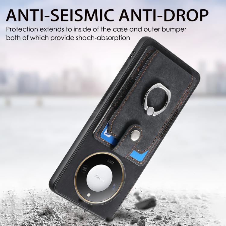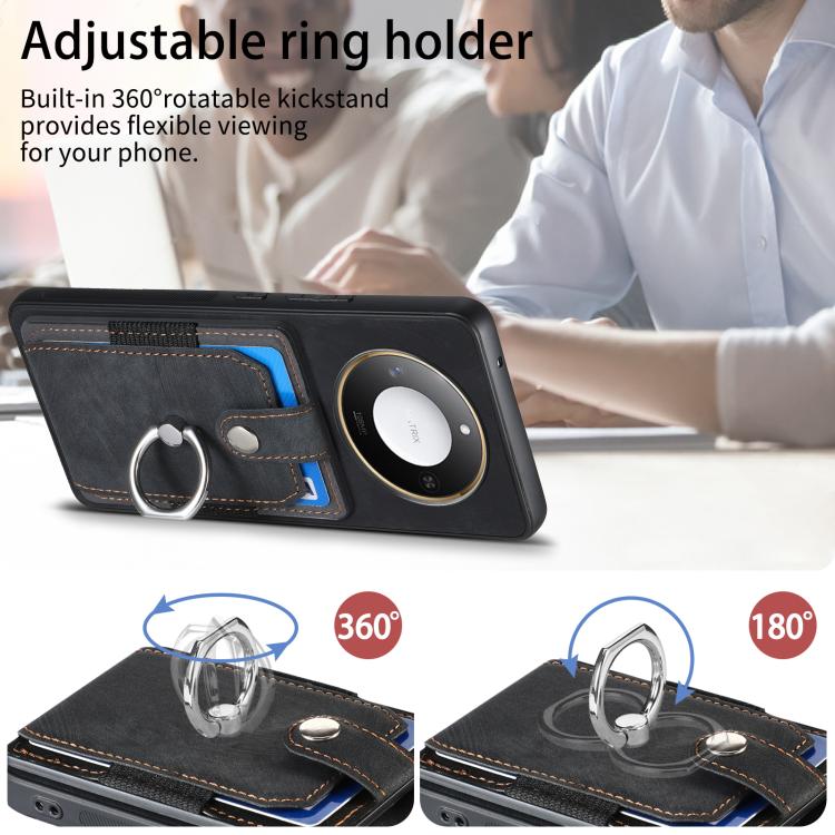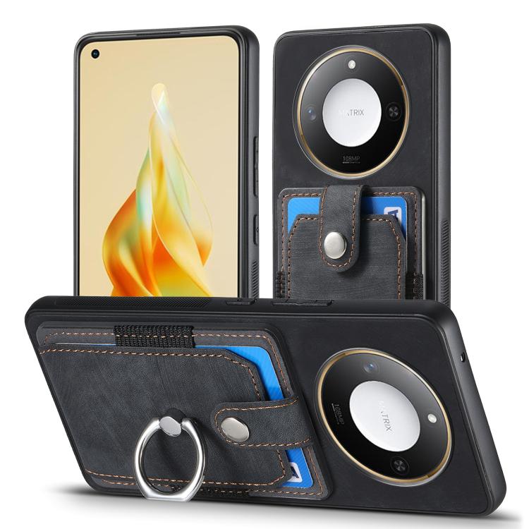 Funda para Teléfono Honor X60 con Tarjetero y Anillo Tacto de Piel (Negra)