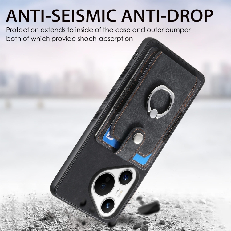 - 1x Funda para Teléfono Huawei Pura 70 Pro con Tarjetero y Anillo Tacto de Piel (Negra)