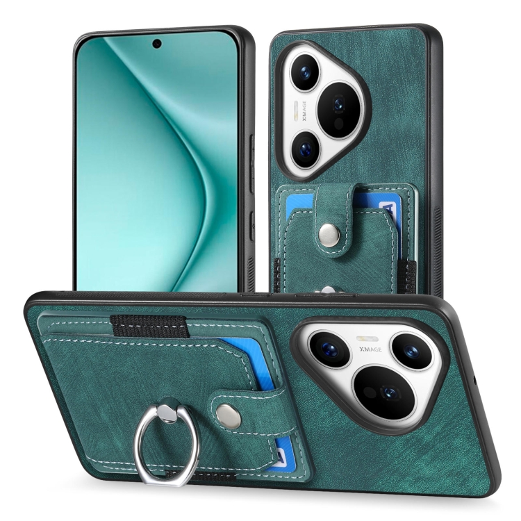 - 1x Funda para Teléfono Huawei Pura 70 Pro con Tarjetero y Anillo Tacto de Piel (Verde)