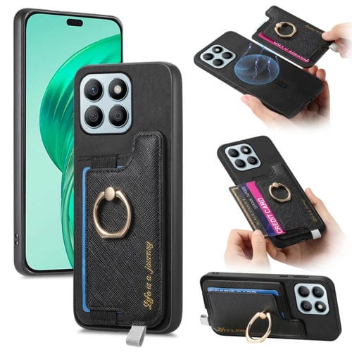 Funda para Teléfono Honor X8B con Tarjetero y Anillo Cuero Diseño Retro Magsafe (Negro)