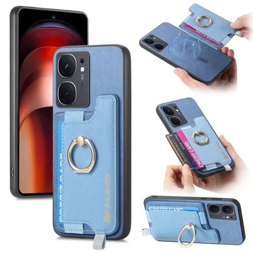 Funda para Teléfono con TaRJetero y Anillo de Cuero con Diseño Retro Magsafe para Vivo Iqoo Neo9/Neo9 Pro 5G (Azul)