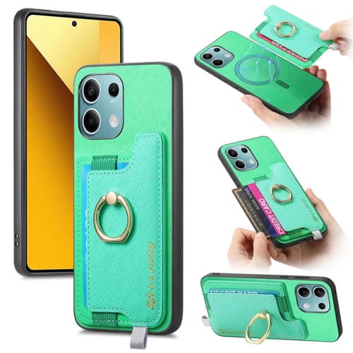 Funda para Teléfono con TaRJetero y Anillo de Cuero con Diseño Retro Magsafe para Xiaomi Redmi Note 13 5G (Verde)