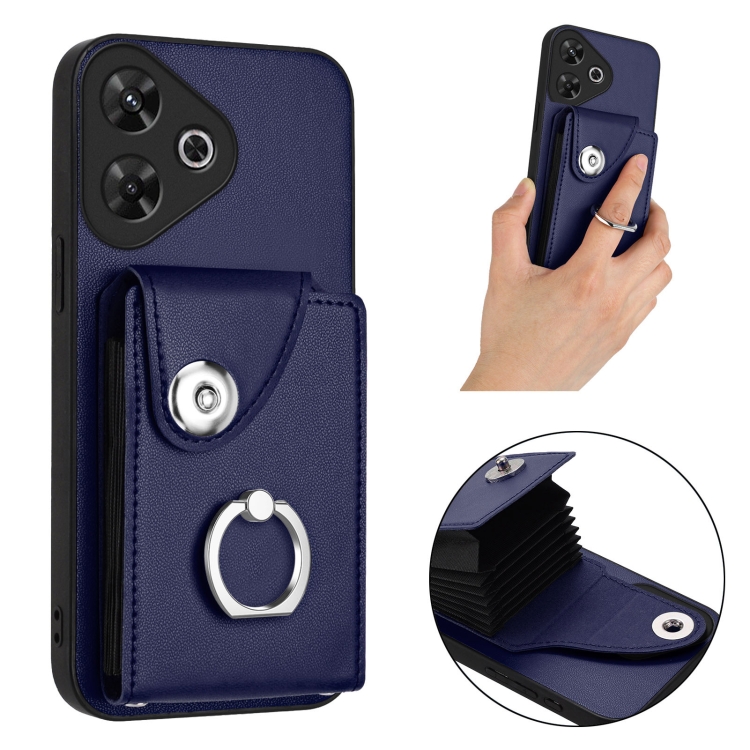Funda para Teléfono con TaRJetero y Anillo para Redmi 13 4G/5G (Azul)