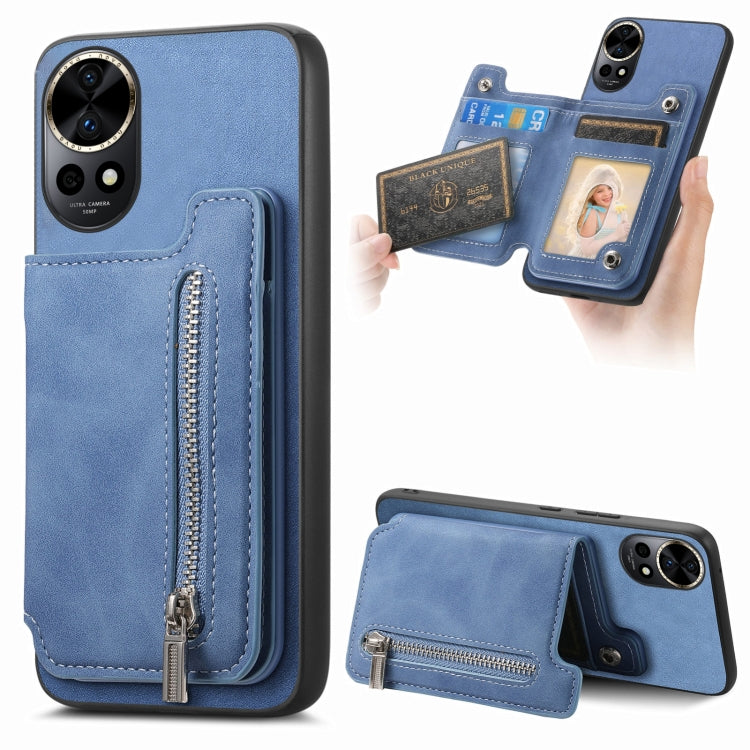 Funda para Teléfono Huawei Nova 12/13 con Tarjetero y Cremallera Magsafe Retro (Azul)