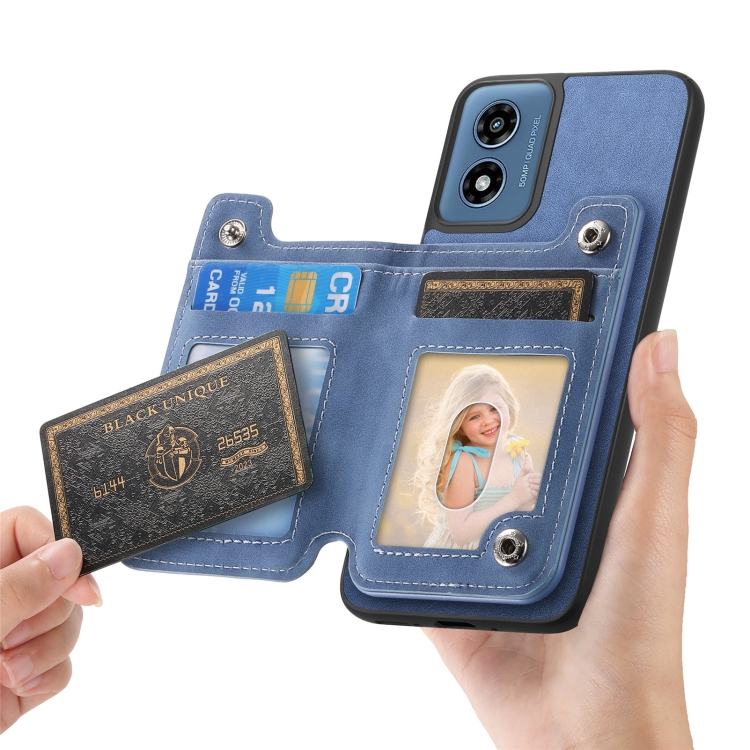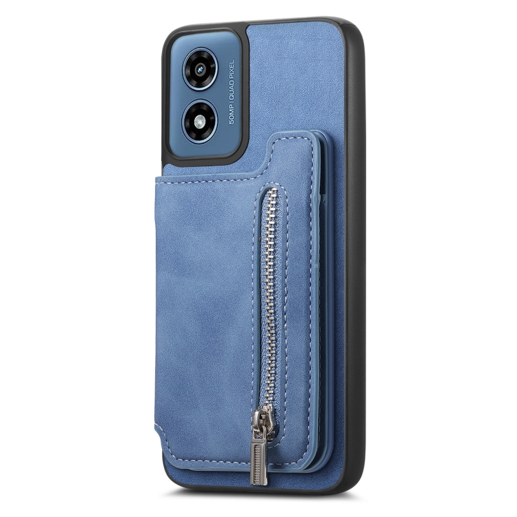 Funda para Motorola Moto G Power 2024 5G con Tarjetero, Cremallera Retro y Magsafe (Azul)