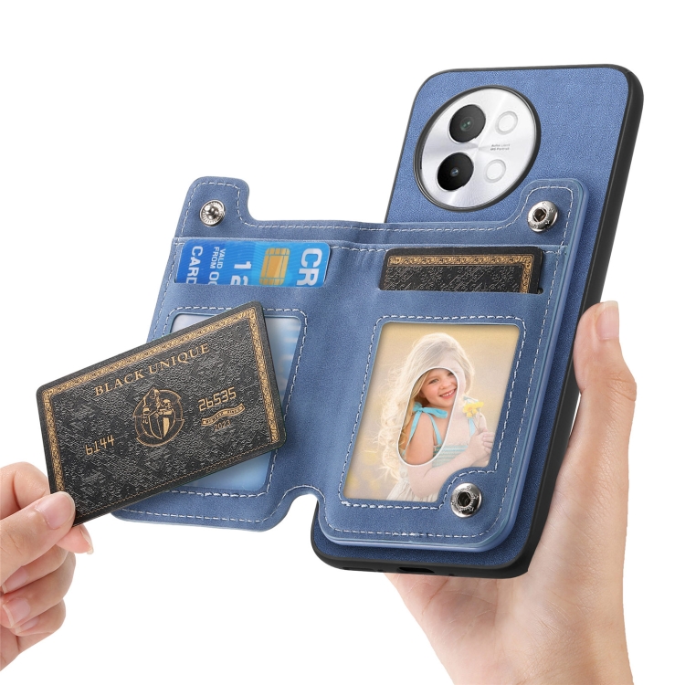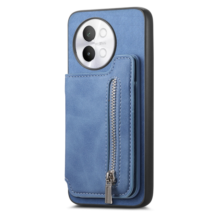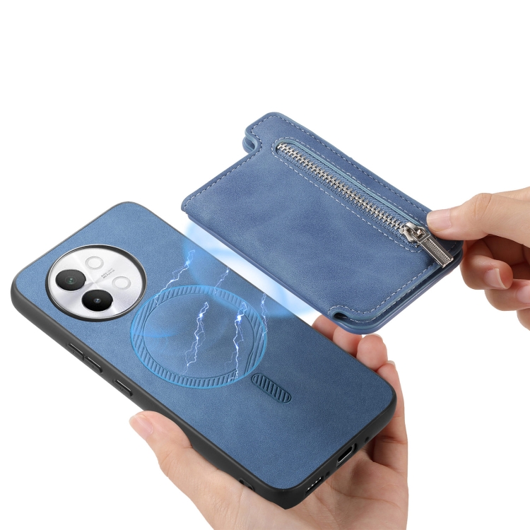 Funda para Teléfono con TaRJetero y Cremallera Retro Magsafe para Vivo Iqoo 12 5G (Azul)