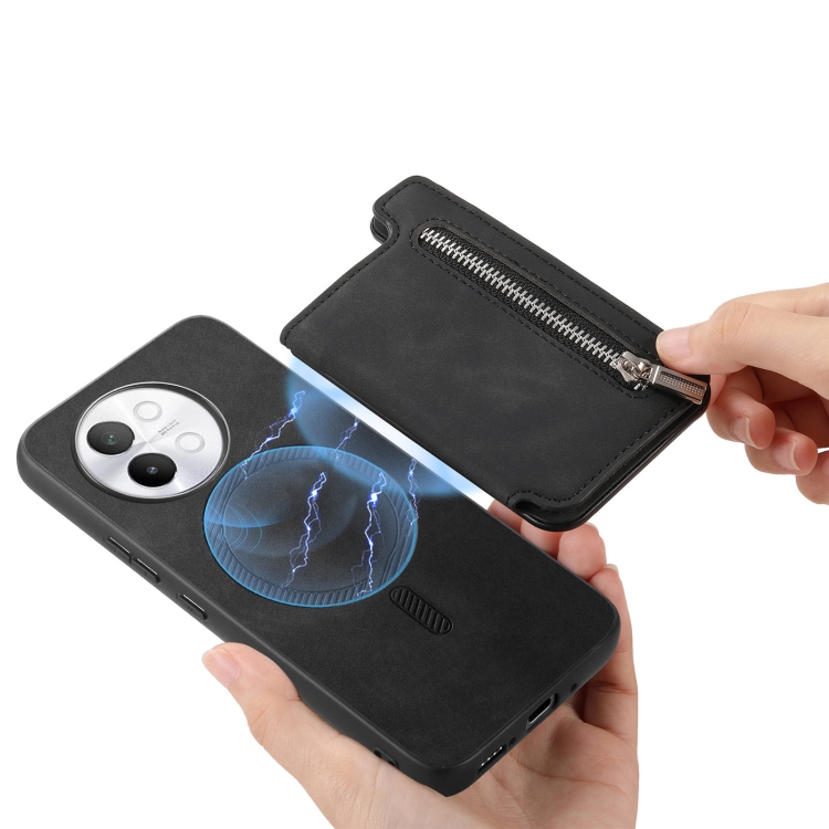 Funda para Teléfono con TaRJetero y Cremallera Retro Magsafe para Vivo Iqoo 12 5G (Negra)