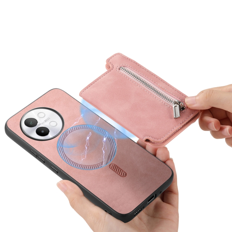 Funda para Teléfono con TaRJetero y Cremallera Retro Magsafe para Vivo Iqoo 12 5G (Rosa)