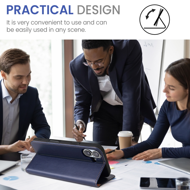 Funda para Teléfono Fierre Shann PU Cuero Genuino para iPhone 16 (Azul)