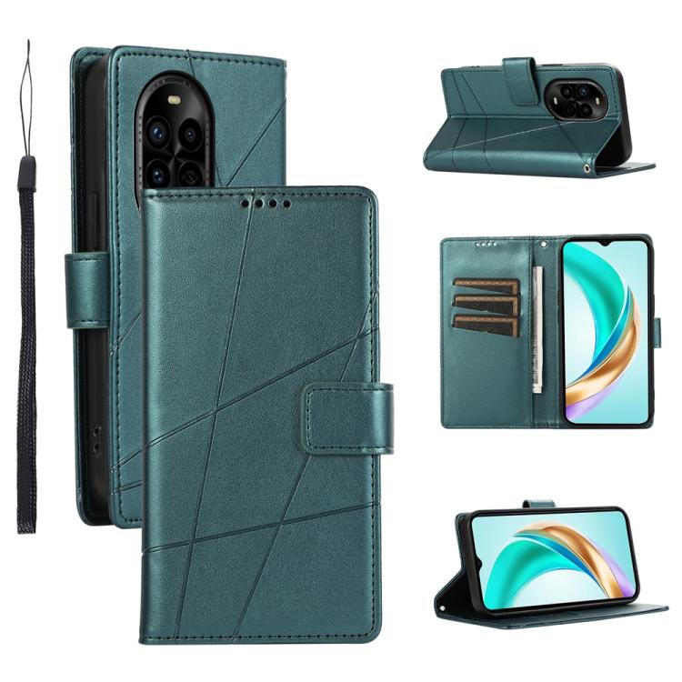 Funda para Teléfono Huawei Nova 13 Pro Cuero Genuino PU Líneas en Relieve (Verde)