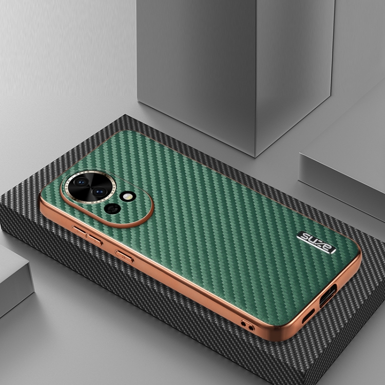 Funda para Teléfono Azns con Textura de Fibra de Carbono y Borde Galvanizado para Huawei Nova 13/Nova 12 (Verde)