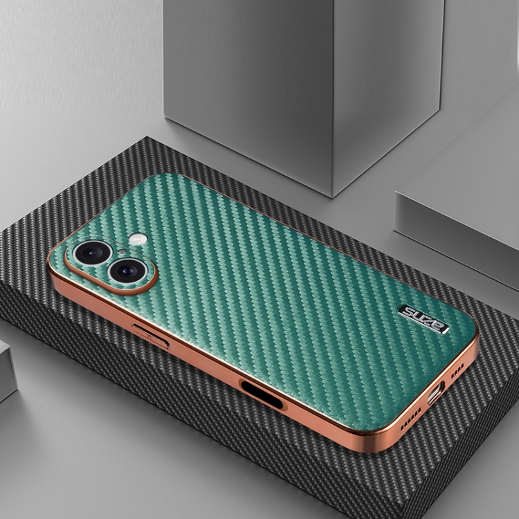 Funda para Teléfono Azns iPhone 16 Plus Textura Fibra de Carbono Borde Galvanizado (Verde)