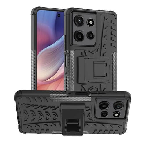Funda TPU + PC con Textura de Neumático para Motorola Moto G Power 5G 2025 con Soporte (Negro)