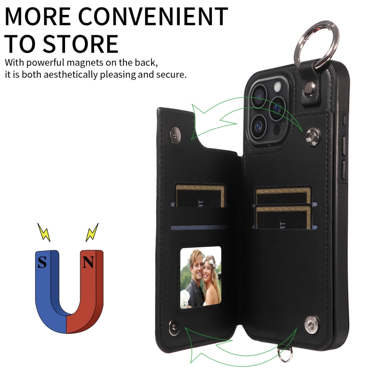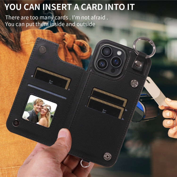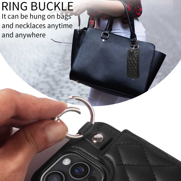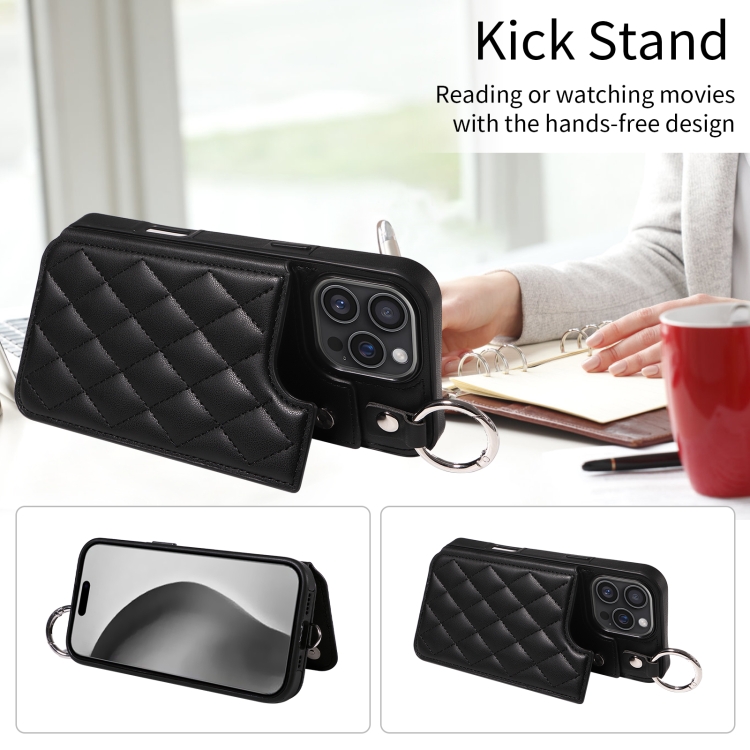 Funda para Teléfono iPhone 16 Pro Max Textura Rómbica Cordón Corto (Negro)