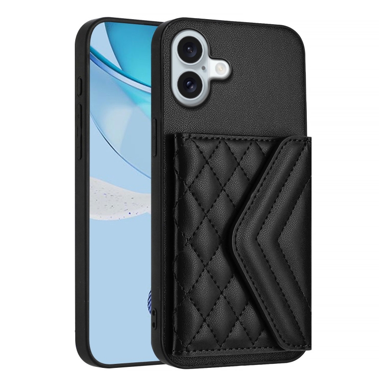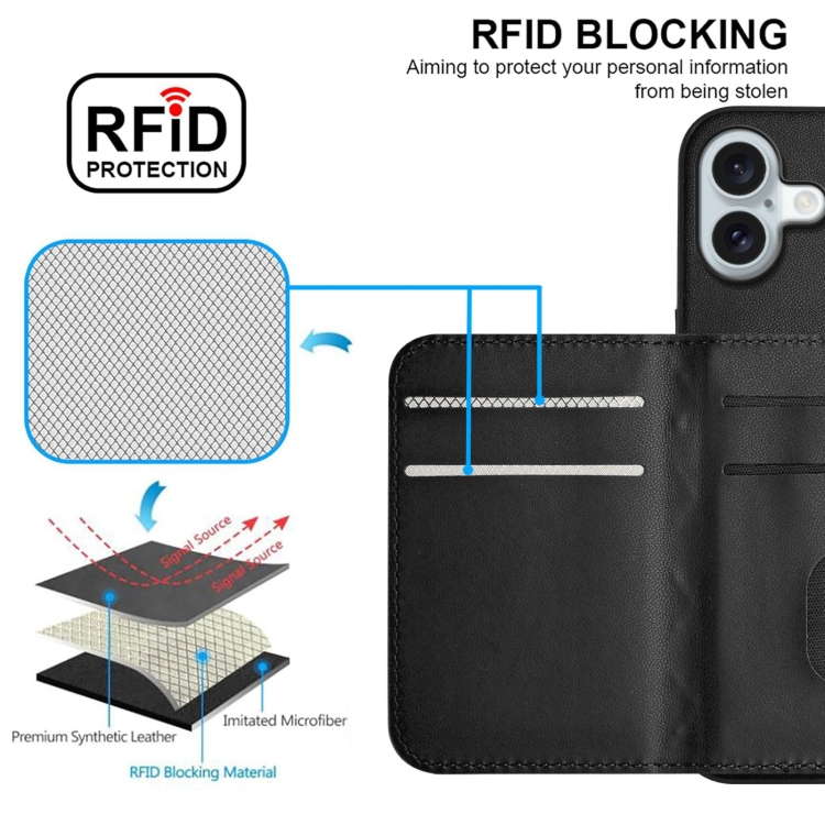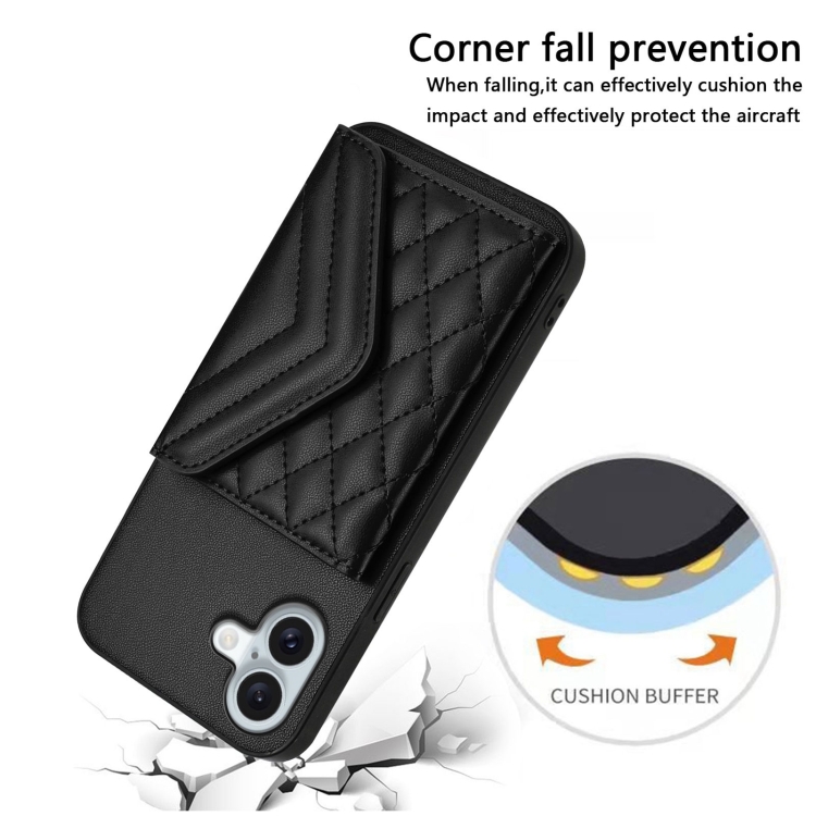 Funda para Teléfono iPhone 16 Plus Textura Rómbica y Rfid con Cordón Largo (Negro)