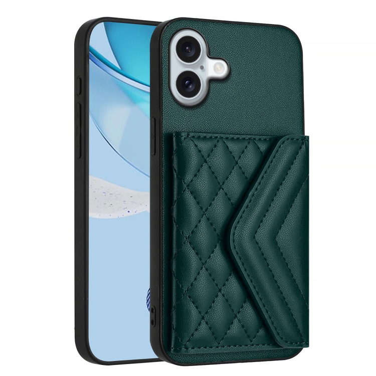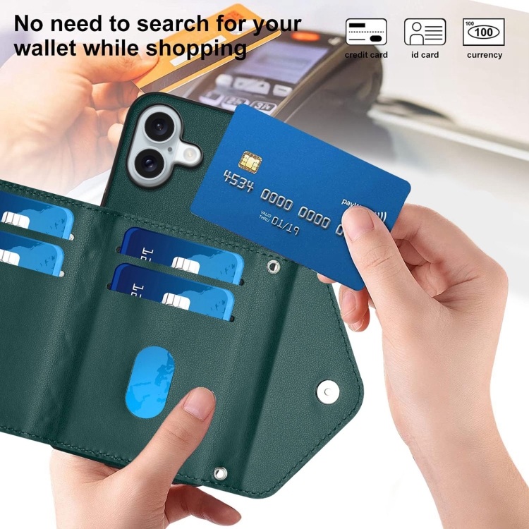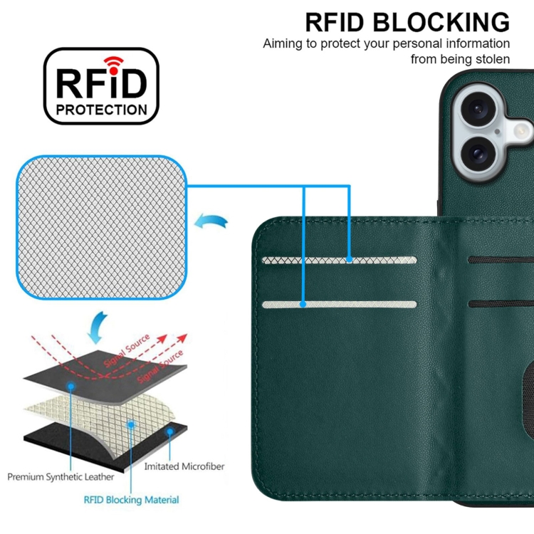 Funda para Teléfono iPhone 16 Plus Textura Rómbica y Rfid con Cordón Largo (Verde)