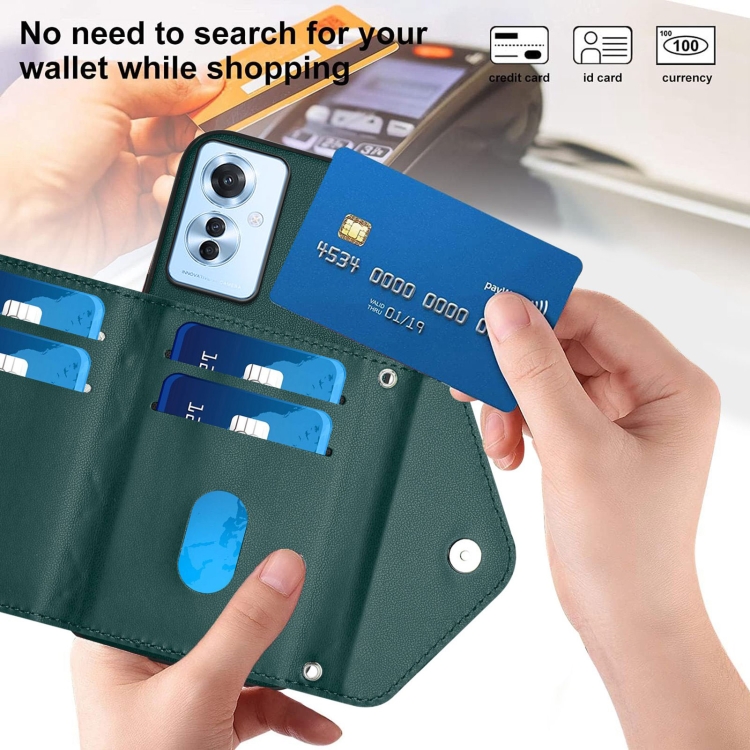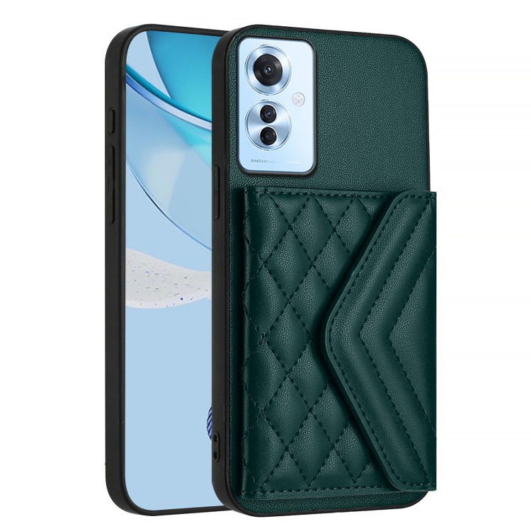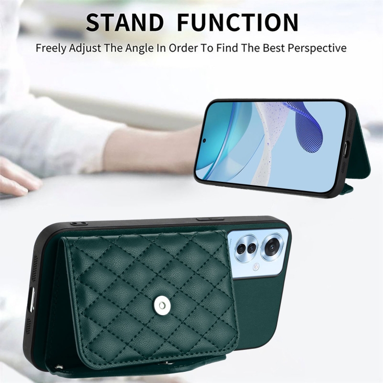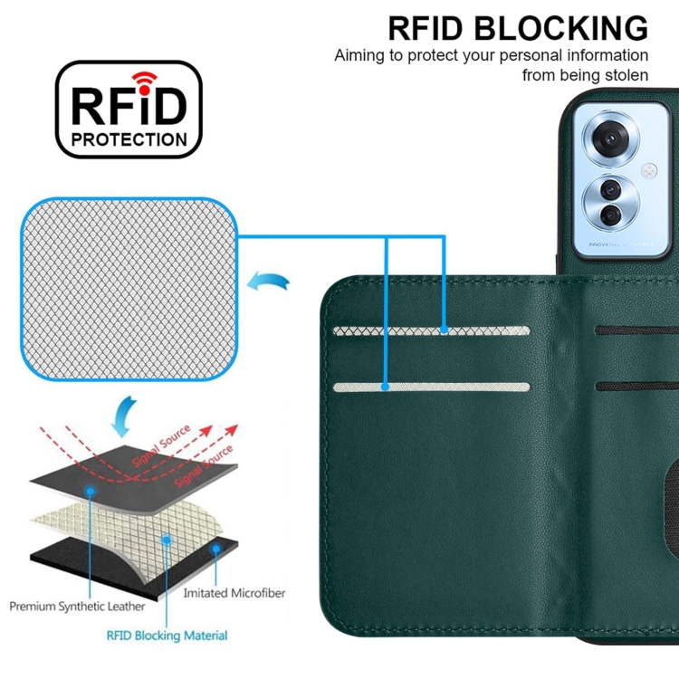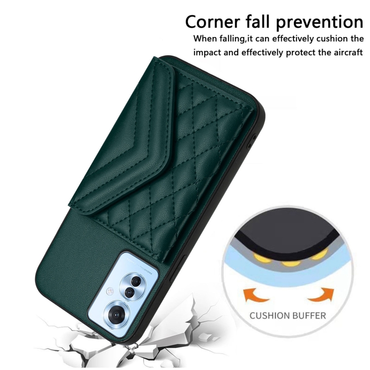 Funda para Teléfono con Textura Rómbica y Rfid para Oppo F25 Pro 5G, con Cordón Largo (Verde)
