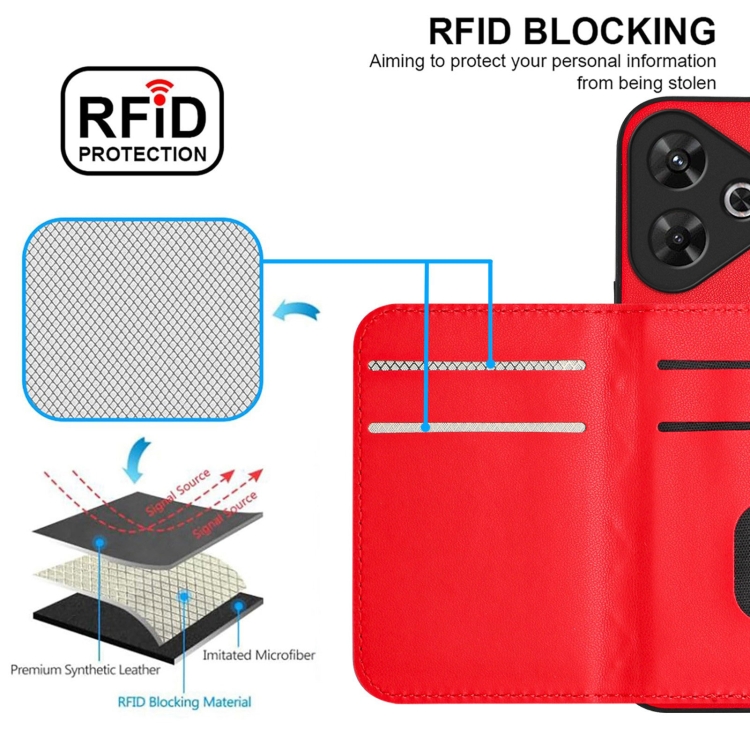 Funda para Teléfono con Textura Rómbica y Rfid para Redmi Note 13R Pro/13 4G (Roja)