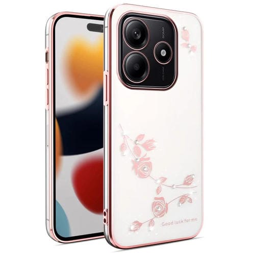 Funda para Teléfono con Todo Incluido y Diseño de Flores y Diamantes Brillantes para Xiaomi Redmi Note 14 5G (Rosa)