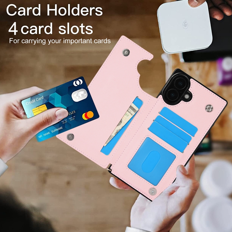 Funda para teléfono iPhone 16 Plus con cremallera y diseño cruzado (Rosa)