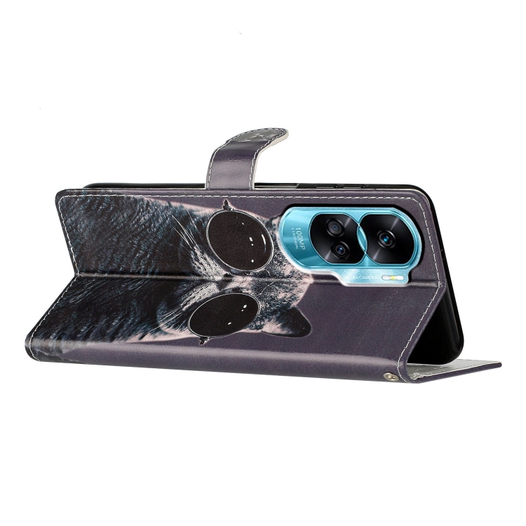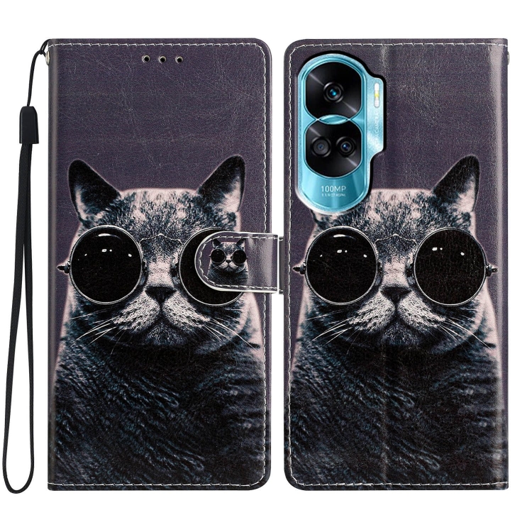 Funda para Teléfono Honor 90 Lite Cuero con Dibujo Gato con Gafas de Sol