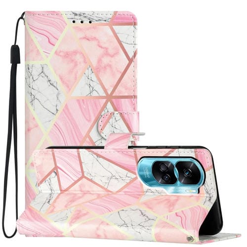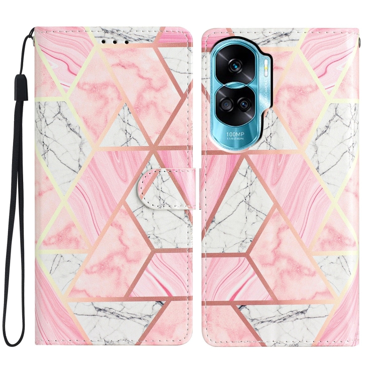 Funda de Cuero para Honor 90 Lite con Dibujo Coloreado (Mármol Rosa)