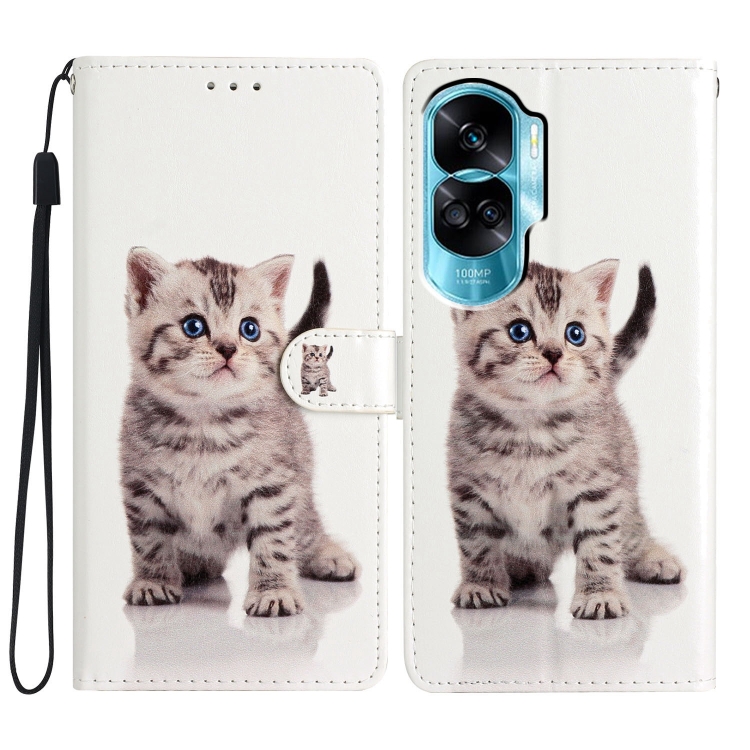 Funda para Teléfono Honor 90 Lite Cuero Dibujo Coloreado Pequeño Gato Atigrado