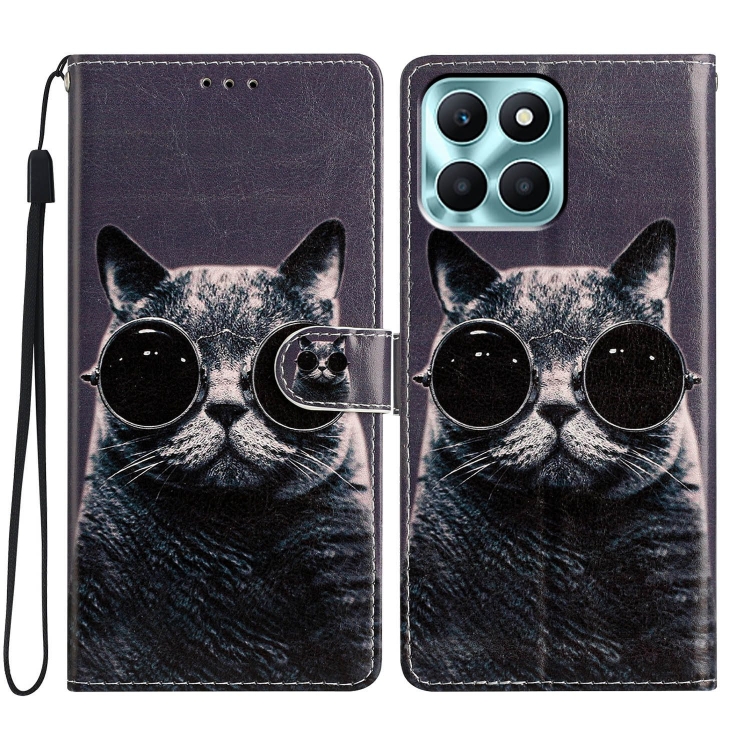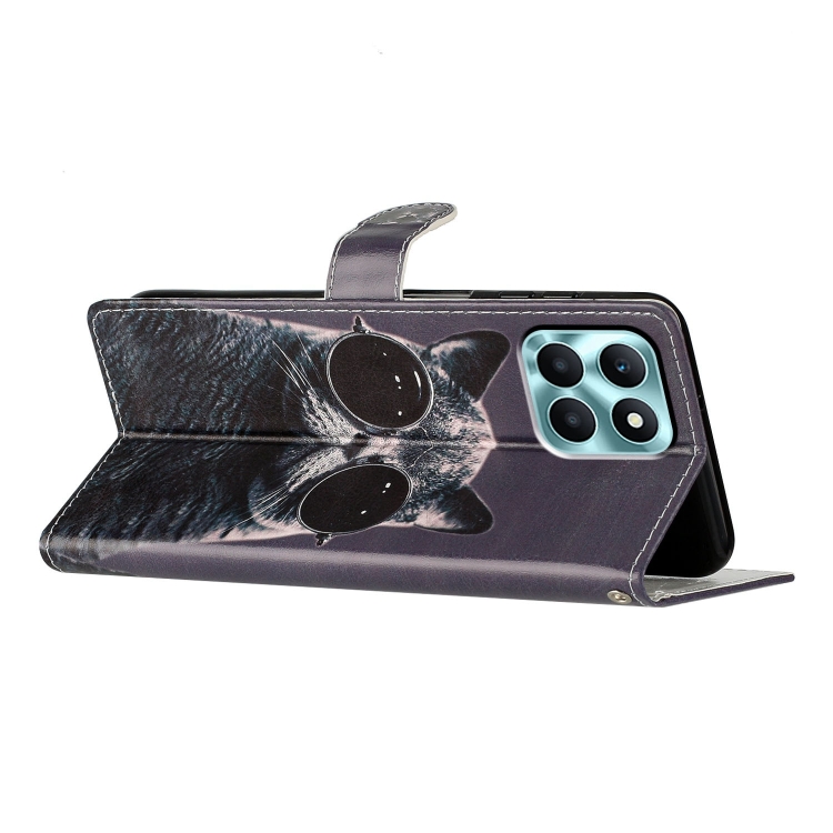 Funda para Teléfono Honor X6A de Cuero con Dibujo Coloreado Gato con Gafas de Sol