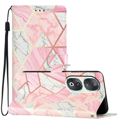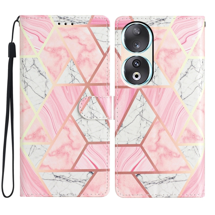 Funda para Teléfono Honor 90 de Cuero con Dibujo de Colores (Mármol Rosa)