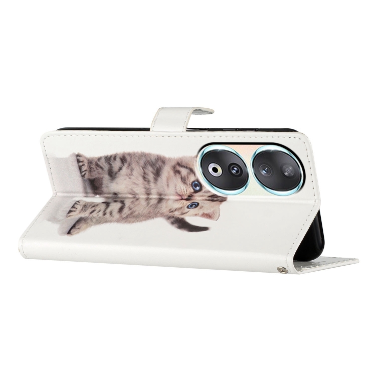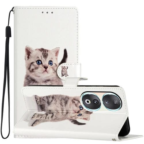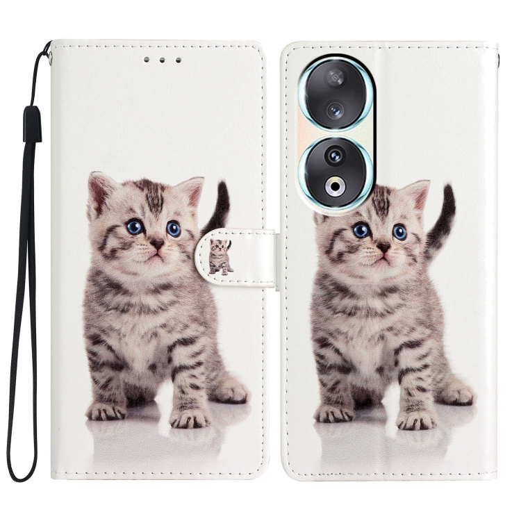 Funda de Cuero para Honor 90 con Dibujo de Colores Pequeño Gato Atigrado