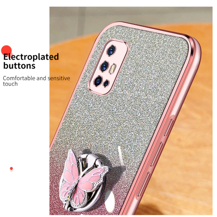 Funda para Teléfono de TPU con Soporte para Mariposas con Purpurina Degradada Chapada En Idn para Vivo V17 India/V19 (Negra)