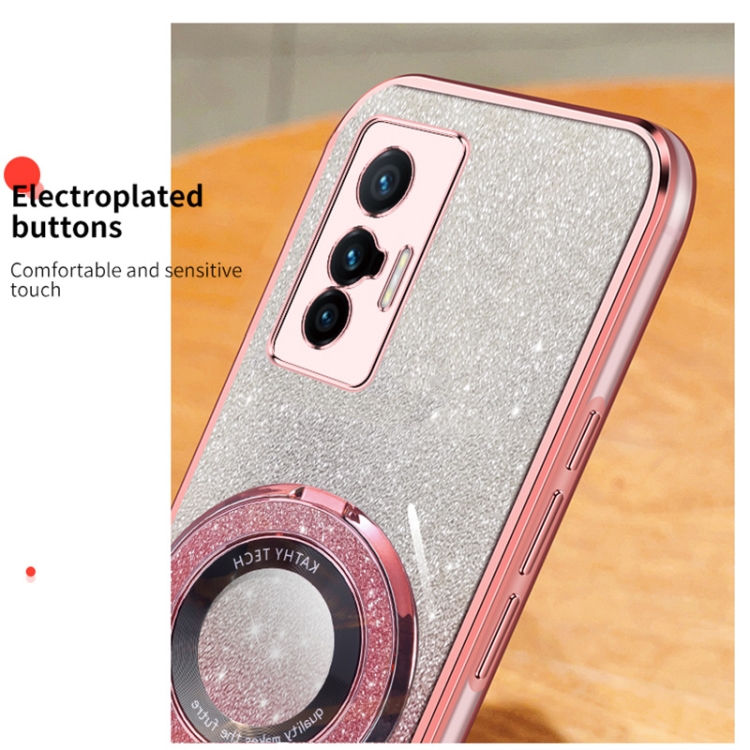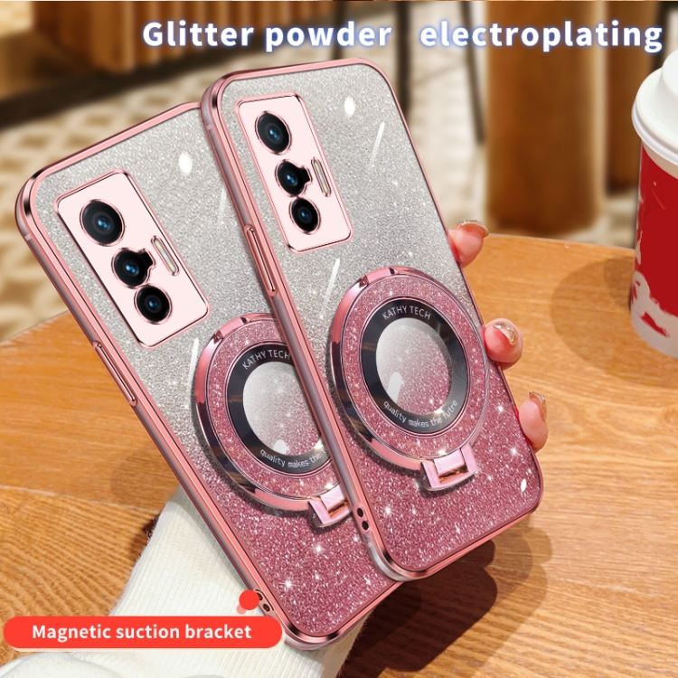 Funda para Teléfono de TPU con Soporte Redondo con Purpurina Degradada Plateada para Vivo X70 (Plateada)