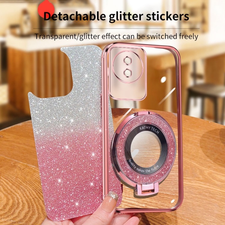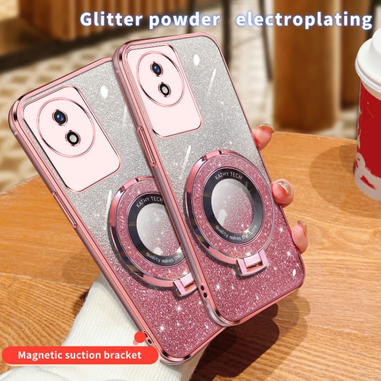 Funda para Teléfono de TPU con Soporte Redondo con Purpurina Degradada Plateada para Vivo Y02/Y11 2023 (Plateada)