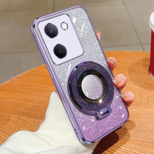 Funda para Teléfono de TPU con Soporte Redondo con Purpurina Degradada Plateada para Vivo Y100 5G (Púrpura)