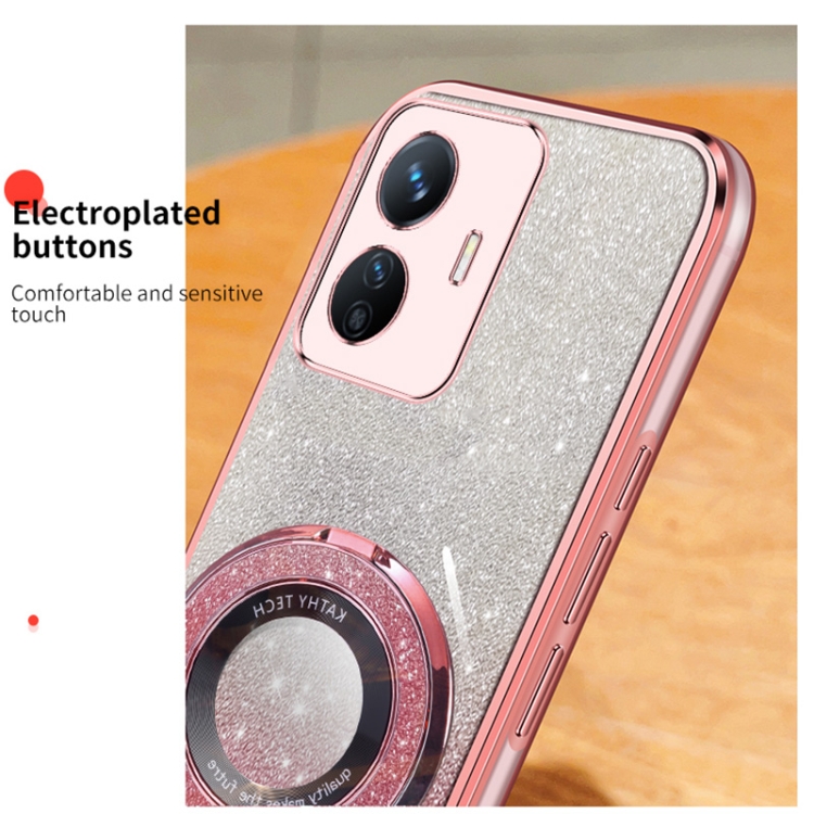 Funda para Teléfono de TPU con Soporte Redondo con Purpurina Degradada Plateada para Vivo Y77E (Plateada)