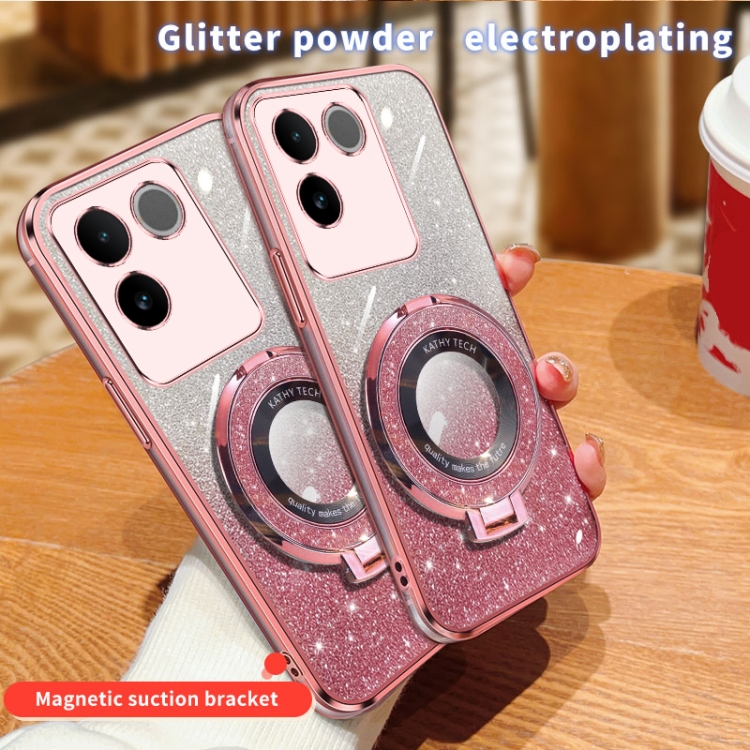 Funda para Teléfono de TPU con Soporte Redondo con Purpurina y Degradado Chapado para Vivo S17E (Morado)