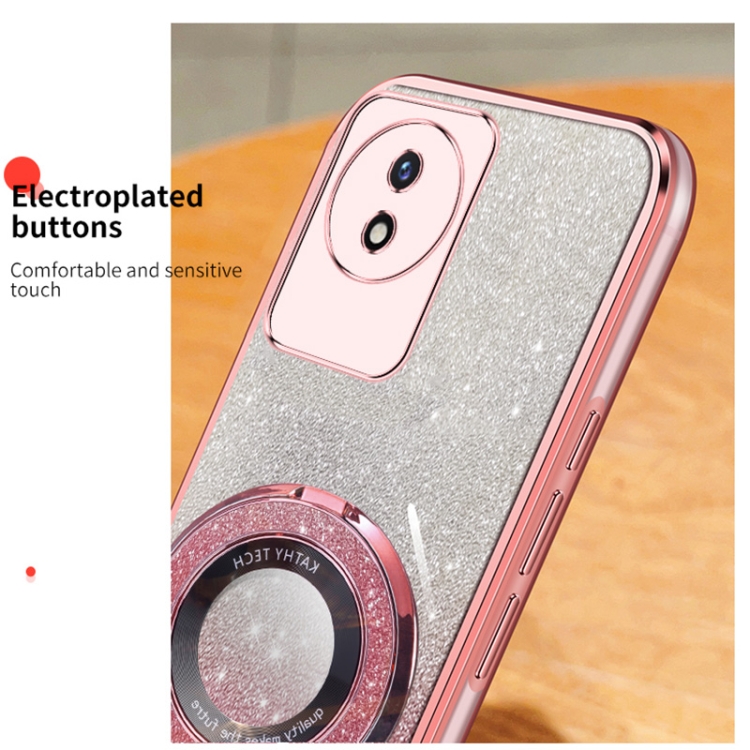 Funda para Teléfono de TPU con Soporte Redondo con Purpurina y Degradado Chapado para Vivo Y02/Y11 2023 (Morado)