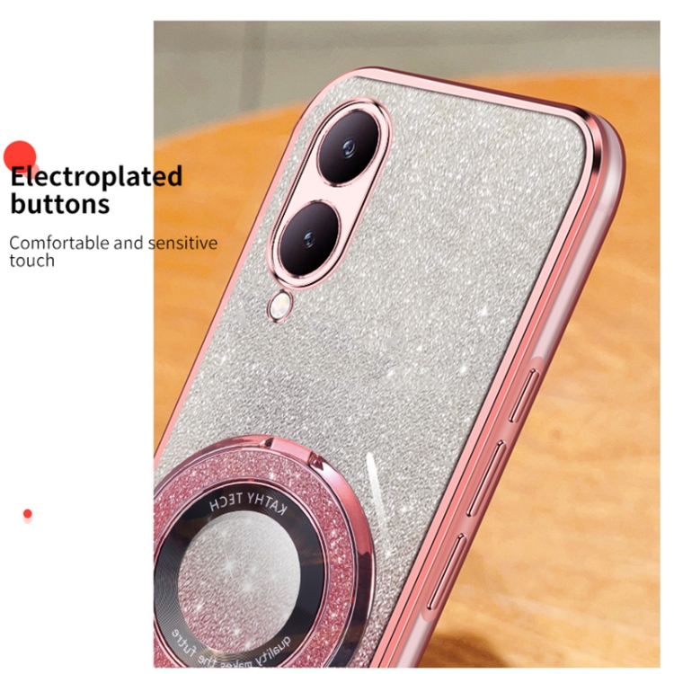 Funda para Teléfono de TPU con Soporte Redondo con Purpurina y Degradado Chapado para Vivo Y17S (Azul Sierra)