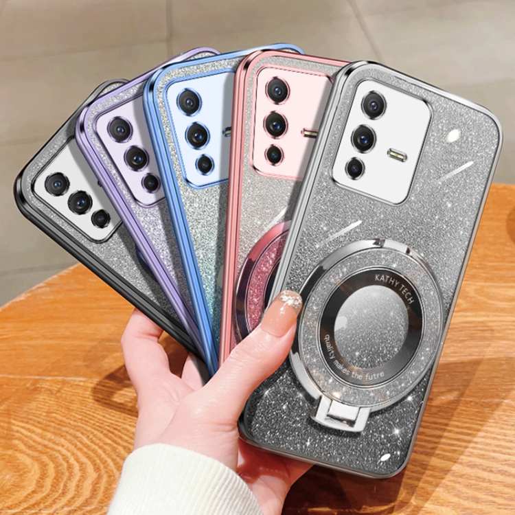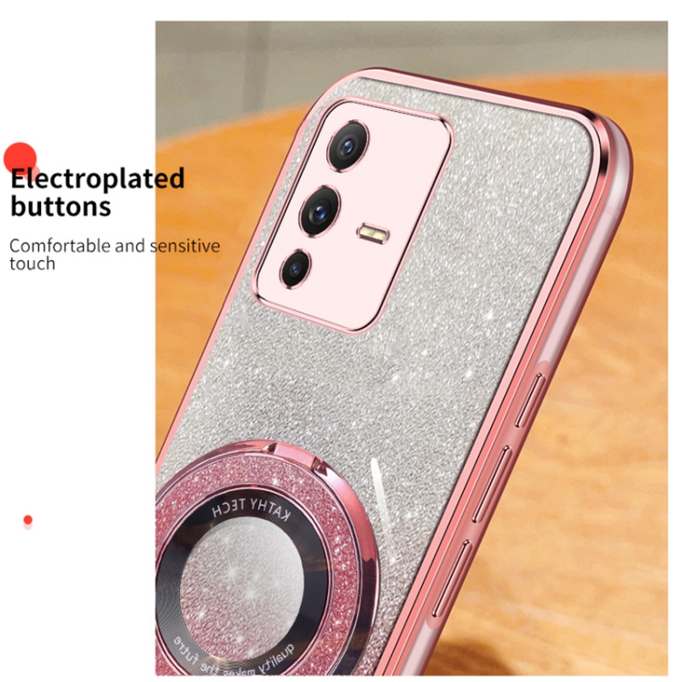 Funda para Teléfono de TPU con Soporte Redondo y Purpurina Degradada Chapada para Vivo S12/V23 5G (Rosa)