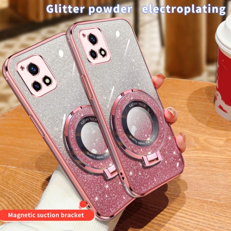 Funda para Teléfono de TPU con Soporte Redondo y Purpurina Degradada Chapada para Vivo Y52S/Y31S 5G (Rosa)