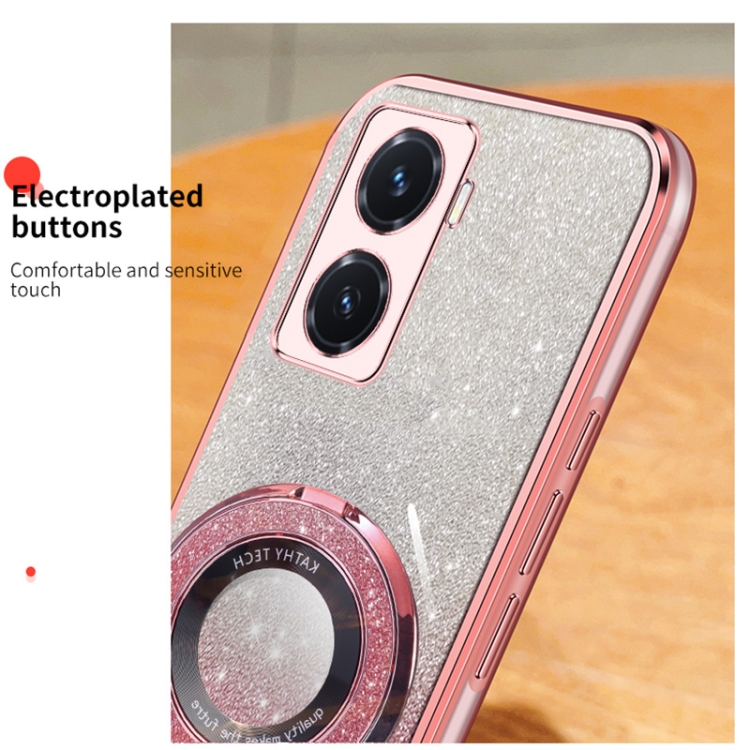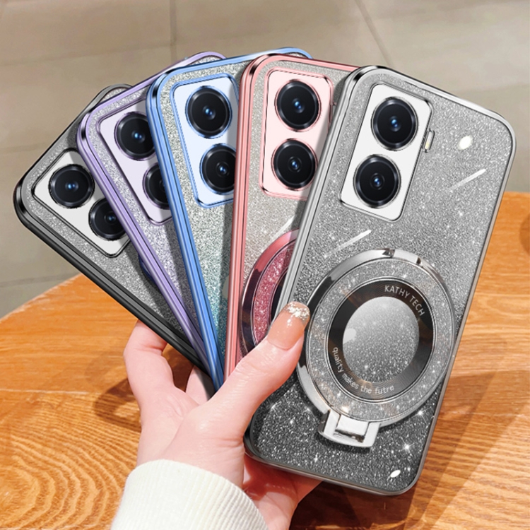 Funda para Teléfono de TPU con Soporte Redondo y Purpurina Degradada Chapada para Vivo Y77 5G (Negro)