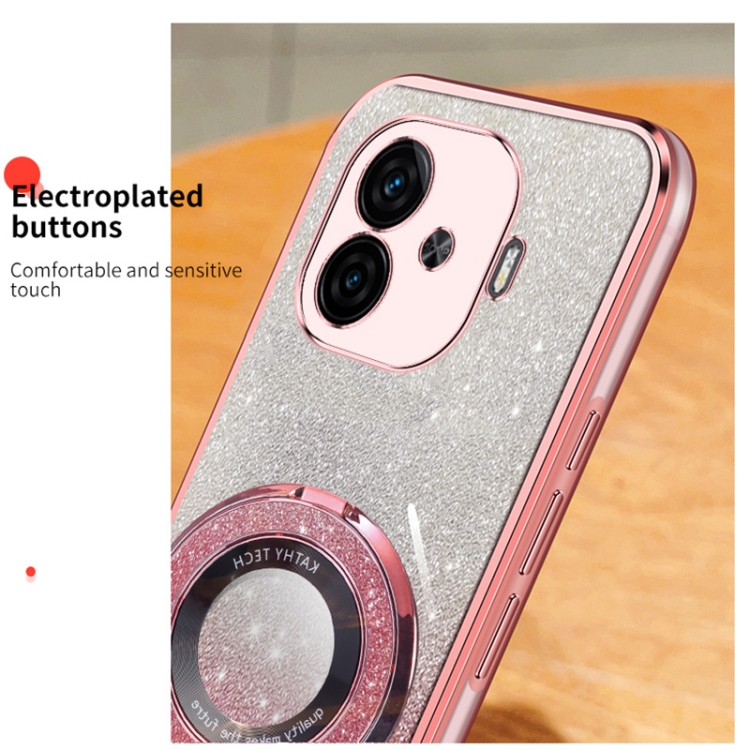 Funda para Teléfono de TPU con Soporte Redondo y Purpurina Degradada Plateada para Vivo Iqoo Neo Z9 (Negro)