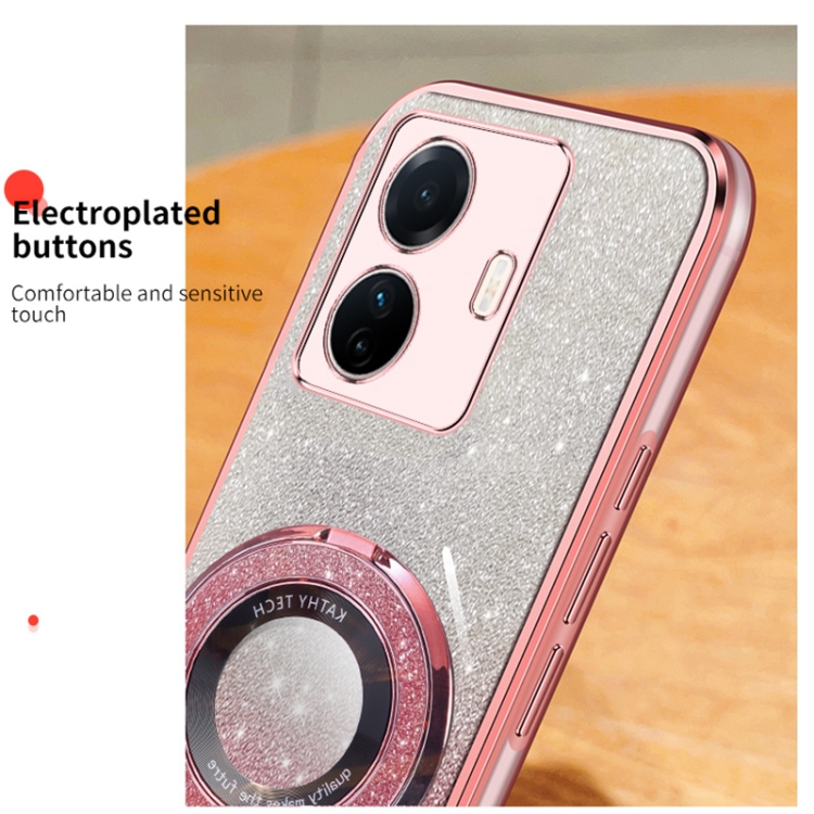 Funda para Teléfono de TPU con Soporte Redondo y Purpurina Degradada Plateada para Vivo S15E/T1 Pro (Negra)