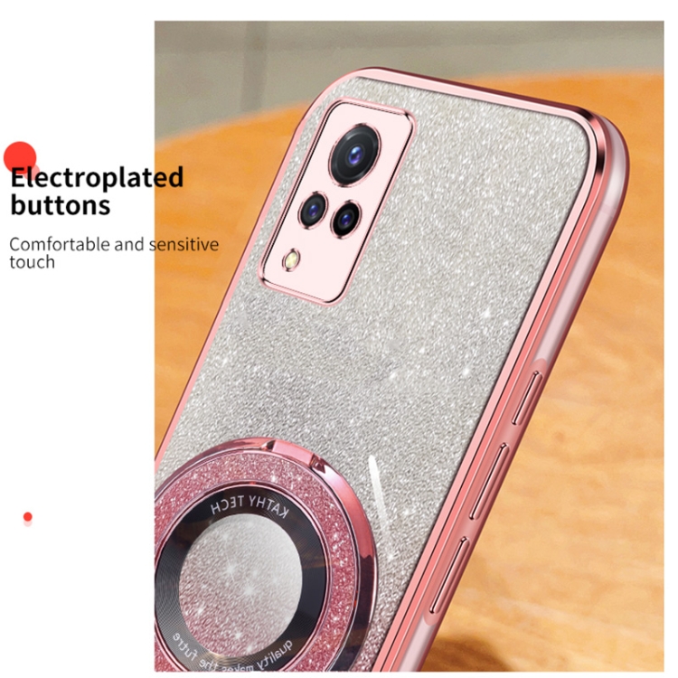 Funda para Teléfono de TPU con Soporte Redondo y Purpurina Degradada Plateada para Vivo S9 (Rosa)